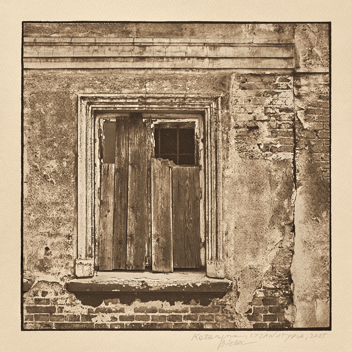 Wystawa „(Nie)obecność” to cykl fotografii Katarzyny Bielec, wykonanych w technikach cyjanotypii i brązu Van Dyke. To nie tylko zapis fragmentów krakowskiego pejzażu architektonicznego, lecz filozoficzna refleksja nad kruchością istnienia i śladami, jakie pozostawia życie.